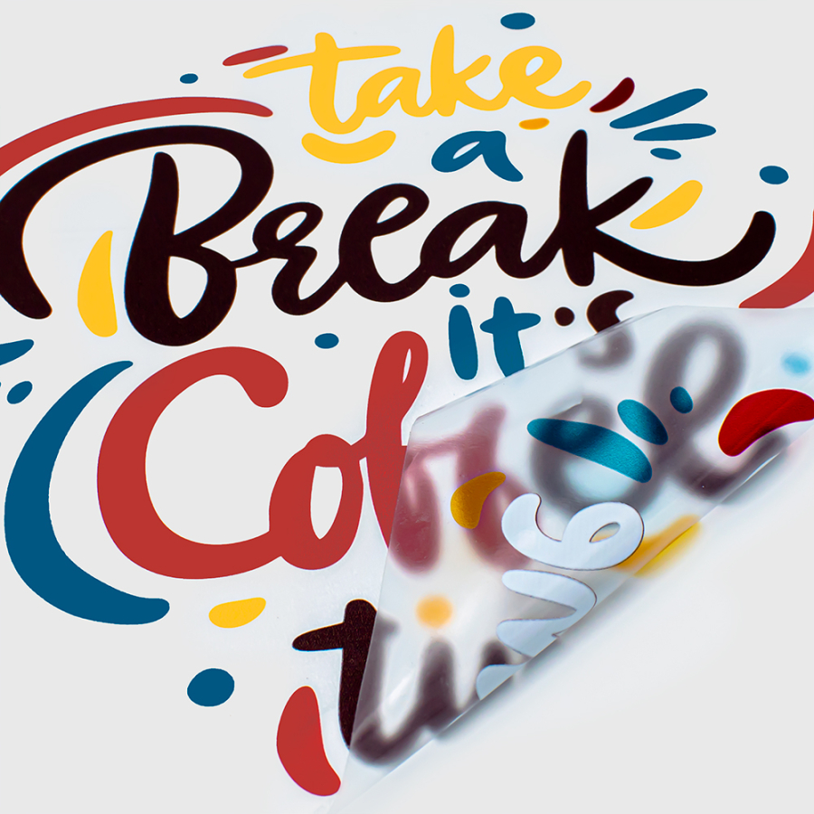 Dotty Vinile trasparente. La versione trasparente del Dotty, concepita con nano tack tecnologico, ha sempre il retro con micro punti colla e ti consente ti poter stampare direttamente le tue grafiche o le tue stampa in modo diretto oppure utilizzando il bianco selettivo o coprente per dare maggior risalto ai colori. In questo modo, stampando il prodotto in modo speculare puoi realizzare dei supporti da applicare all’interno della tua vetrata in modo da risultare visibili all’esterno permettendoti di comunicare con la massima facilità di applicazione senza alcun problema di fastidiose bolle e tempo perso per toglierle. Alla portata di tutti!