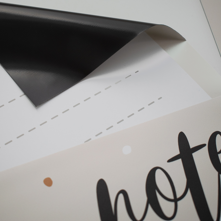 La nostra Lavagna magneticastampabile opaca è un concentrato di tecnologia. Immagina di poter creare graficamente una tua lavagna, cancellabile e riscrivibile, ma al tempo stesso averla anche magnetica. Puoi scrivere con semplici pennarelli cancellabili ma usare anche speciali pennarelli o calamite ferritiche per fermare dei fogli o dei messaggi.