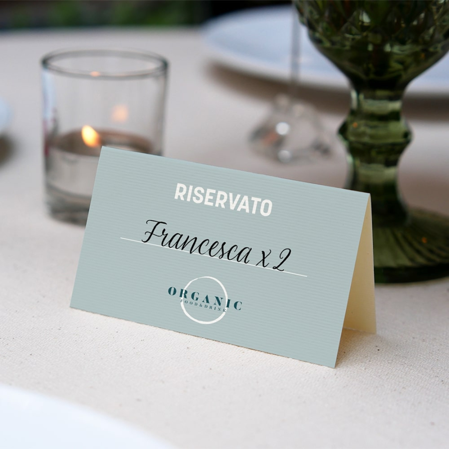 Per rendere più raffinata e completa la tua linea per la ristorazione, DoctaPrint mette a tua disposizione il segnaposto pieghevole: un elemento essenziale per organizzare al meglio la tua attività, per impreziosire la tavola e rendere unica e memorabile l’esperienza dei tuoi clienti.