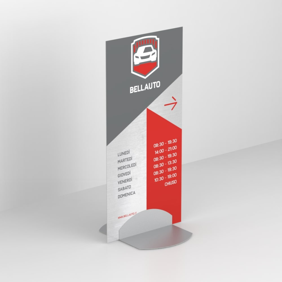 Consiglio tecnico: se il totem deve rimanere in piedi con una base standard, si consiglia di non superare l’altezza di 160 cm, per evitare flessioni del pannello.